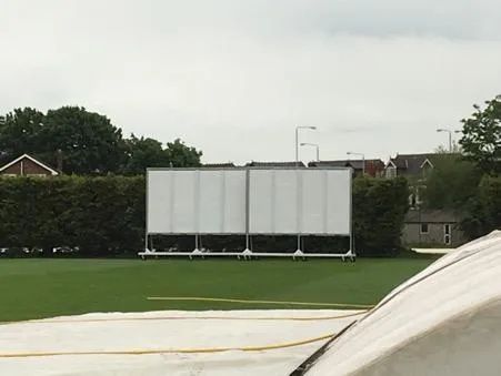 As the cricket season draws closer, Clubs and Schools across the land will be now preparing for the season ahead. Cricket Sightscreens are a critical part of the play, and we have what we believe the premier screens in the market place. As cricket is now both a red and white ball game, our screens swivel to accommodate this. Unique patented design enables the transformation from white to red ball cricket in less than 2 minutes. When not in use panels can be set in a ‘locked open’ position to facilitate airflow through the screen and therefore dramatically reducing potential damage from the elements. Framework: post galvanised steel, with Swivel wheels fitted enabling 360-degree movement if required.